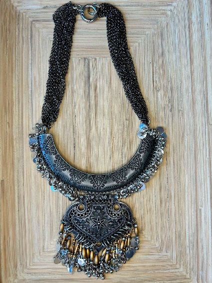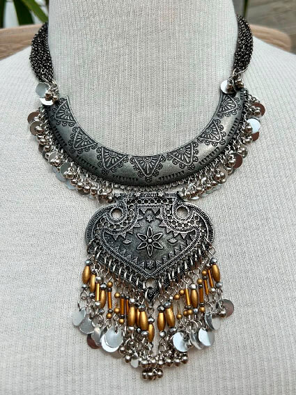 Colar inspirado nos tradicionais colares indianos, feito artesanalmente com detalhes que carregam alma e encanto. Uma peça única, com aquele toque místico que transforma qualquer look.